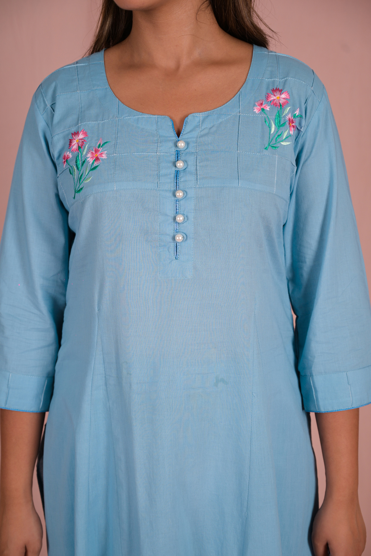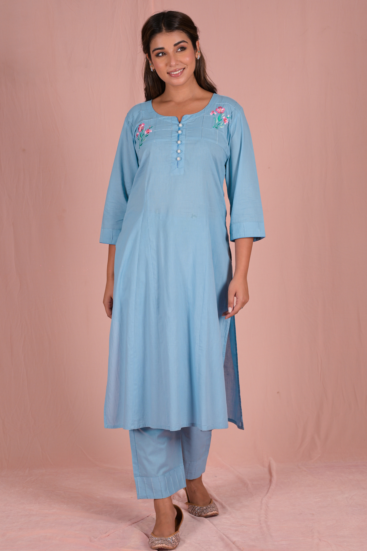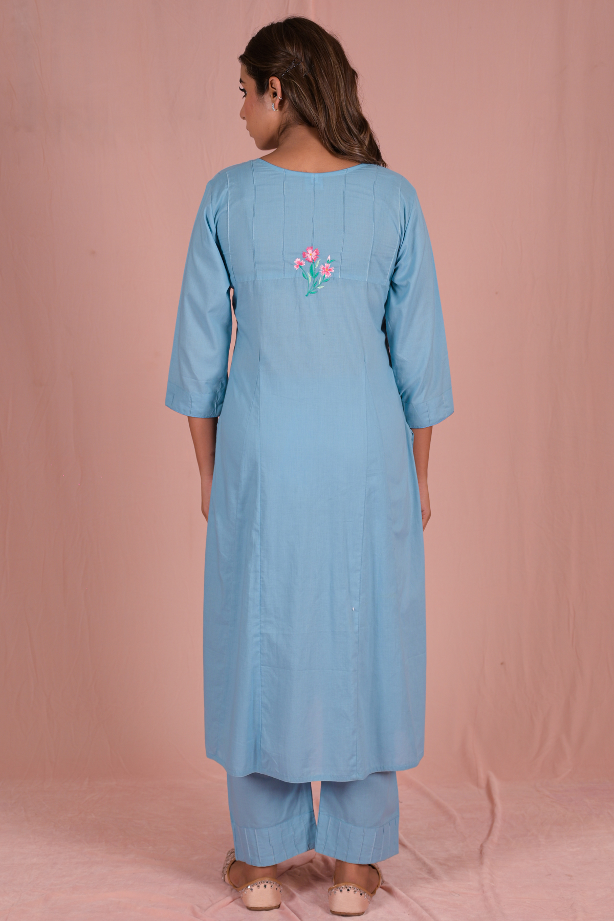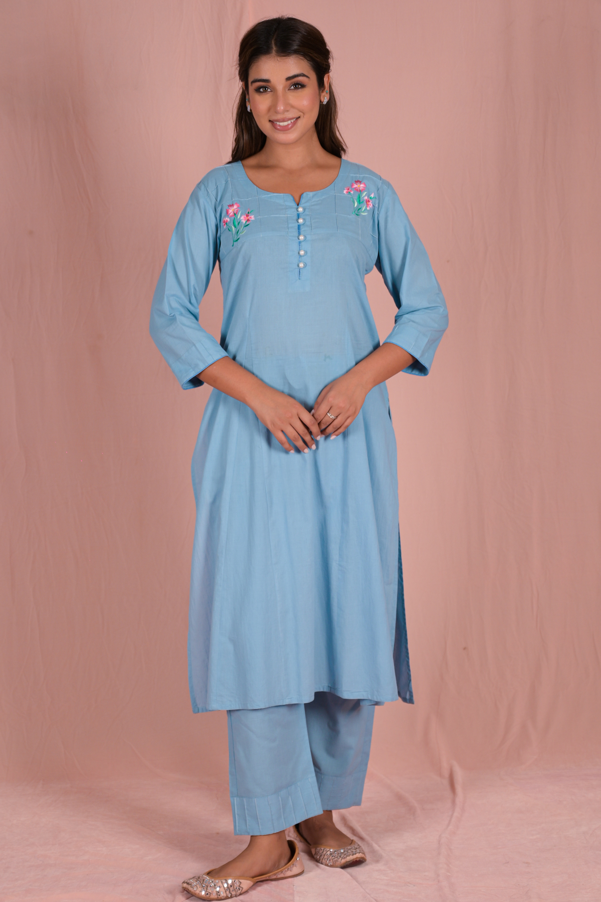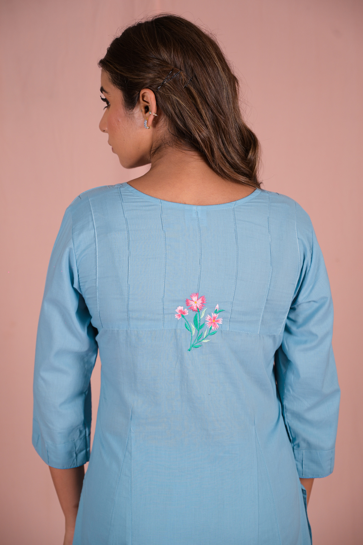 A perfect balance of elegance and comfort, our French Blue Embroidery Kurta with Pintucks is designed to make everyday dressing effortless. The soothing French blue tone is highlighted with delicate embroidery, while the pintuck detailing on the front adds a touch of structure and sophistication. Crafted in soft, breathable fabric, this kurta is ideal for work, casual outings, or festive gatherings.
