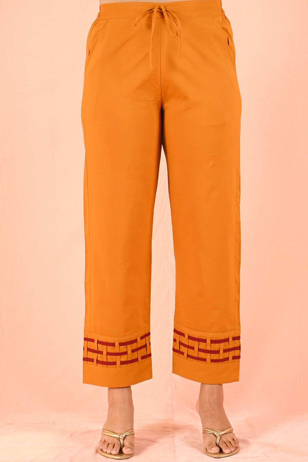 The pants are uplifted with delicate detailing, giving the set a complete and well-finished appeal. Paired with a contrasting dupatta in a different tone, the ensemble creates a visually rich and layered look that feels premium and occasion-ready.
