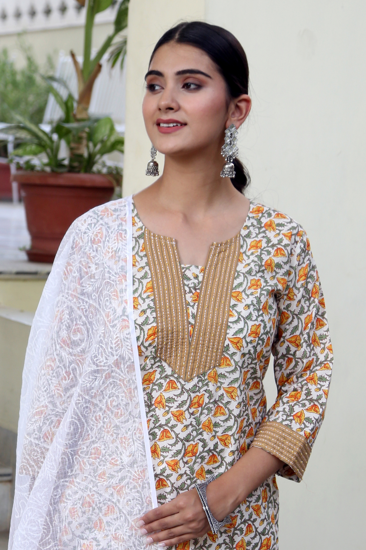 Note: Above is the whole set description, as designed by us. Kurta, Dupatta and Pants are all sold separately.