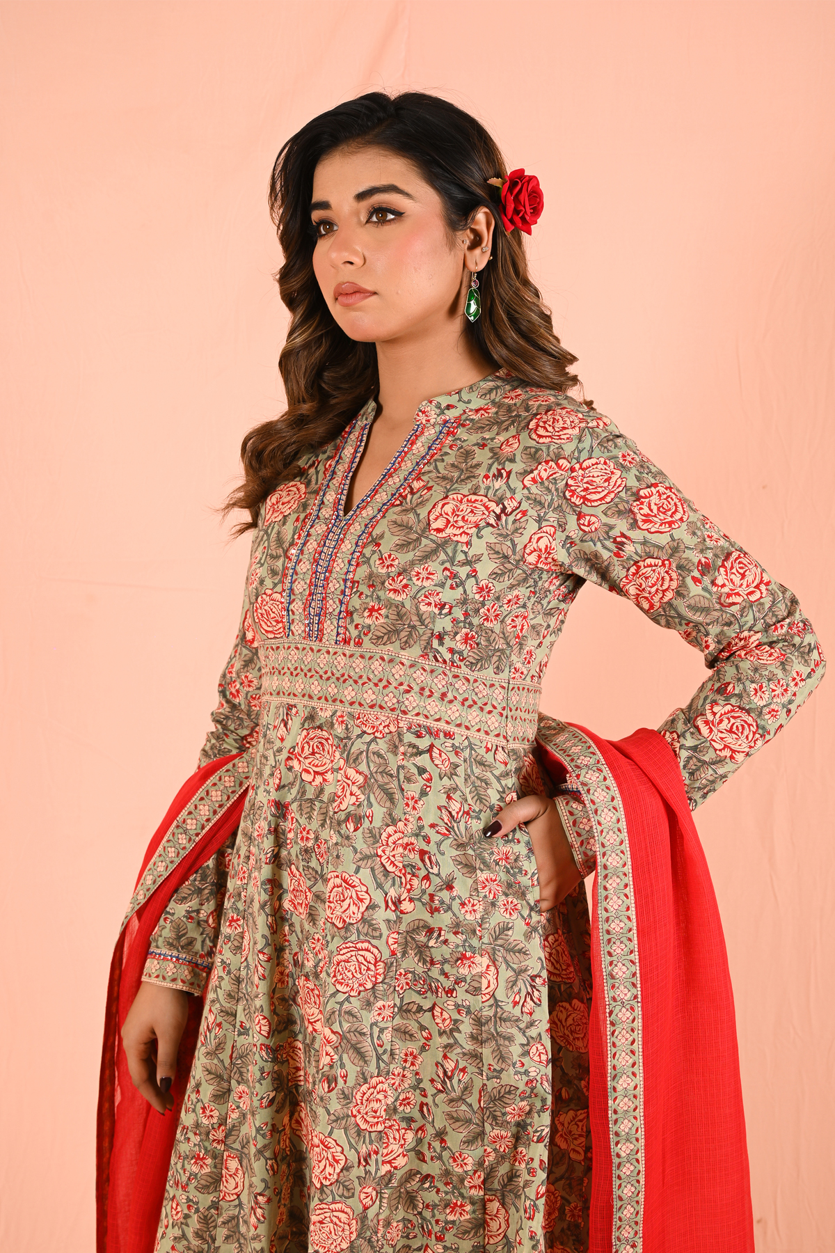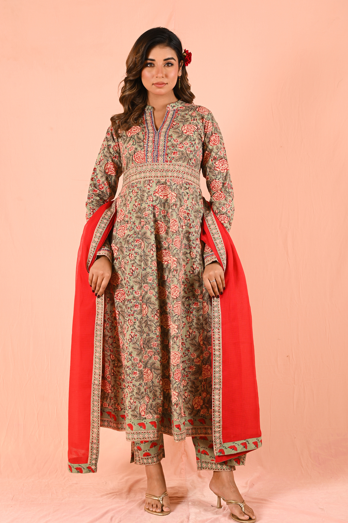 Style it with traditional juttis or mojaris and minimal jewelry for an elegant ethnic look. Add statement earrings or a bangle stack for festive occasions.