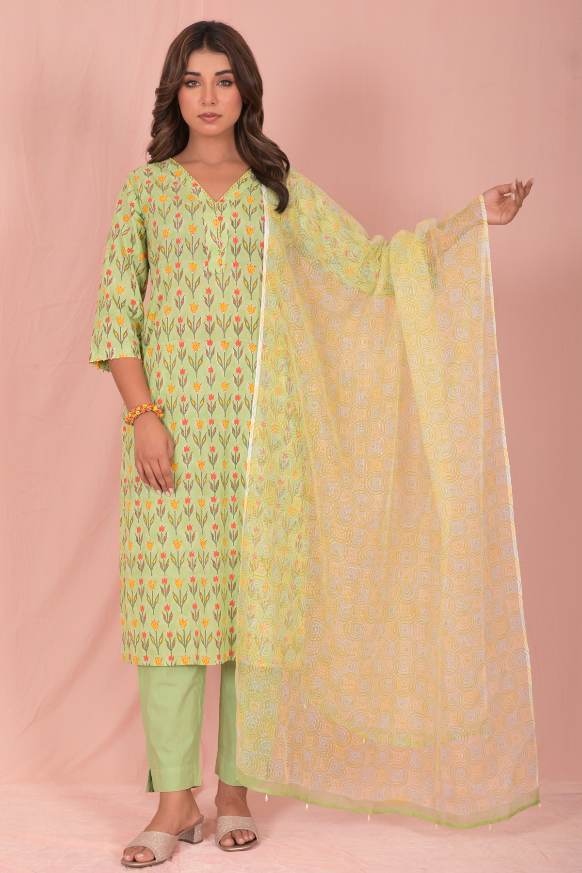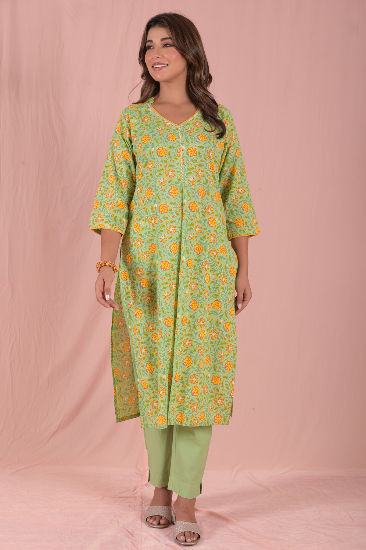 Style it with leggings, palazzos, or straight pants. Add minimal jewelry and flats for a simple everyday outfit, or pair with a dupatta for a more put-together look.