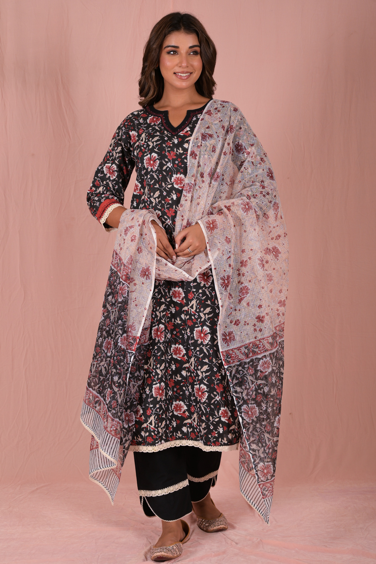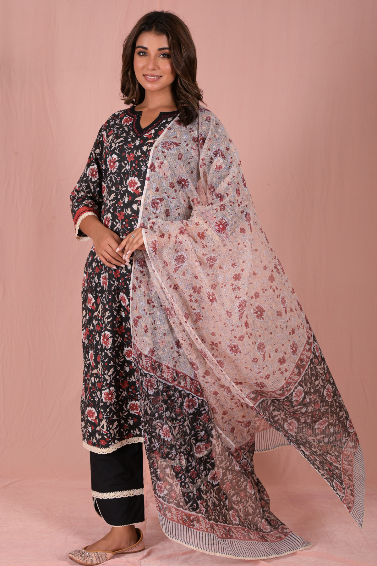 A timeless combination of black, maroon, and cream, the Petunia Set is designed to transition effortlessly between seasons. Crafted in fine, breathable fabric with subtle detailing, it blends sophistication with comfort. The contrast tones create a bold yet elegant look, perfect for any mood or moment.
