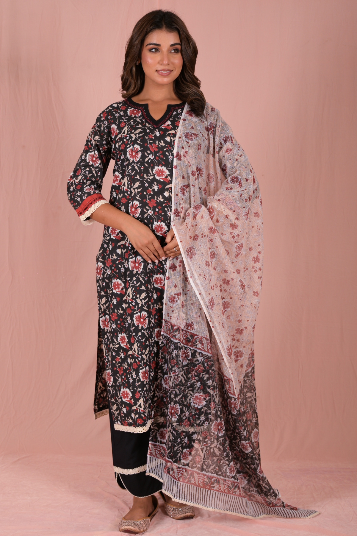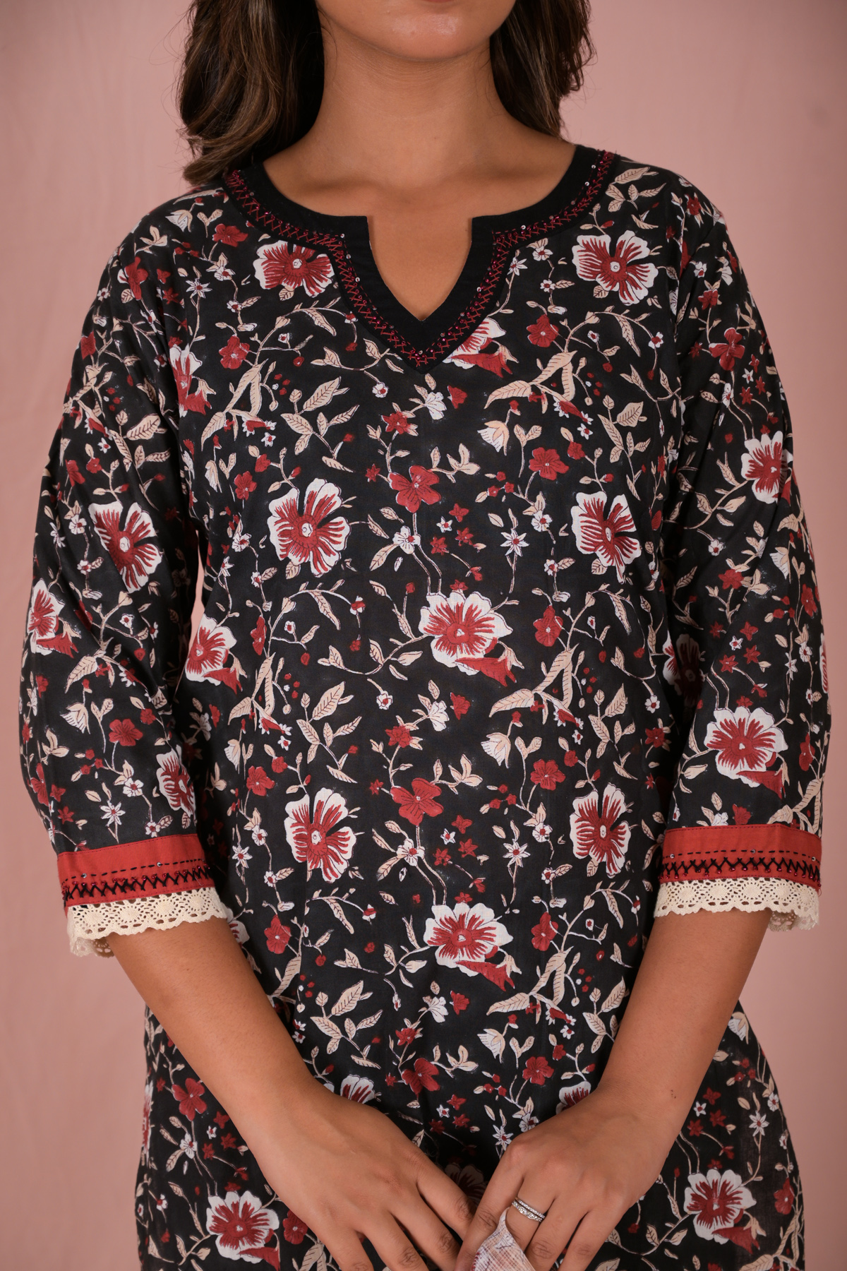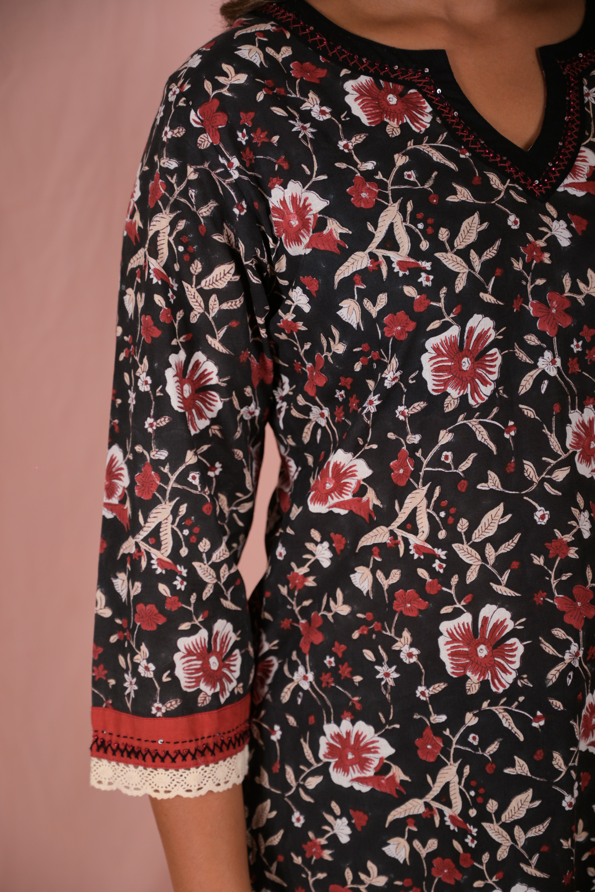 A timeless combination of black, maroon, and cream, the Petunia Set is designed to transition effortlessly between seasons. Crafted in fine, breathable fabric with subtle detailing, it blends sophistication with comfort. The contrast tones create a bold yet elegant look, perfect for any mood or moment.