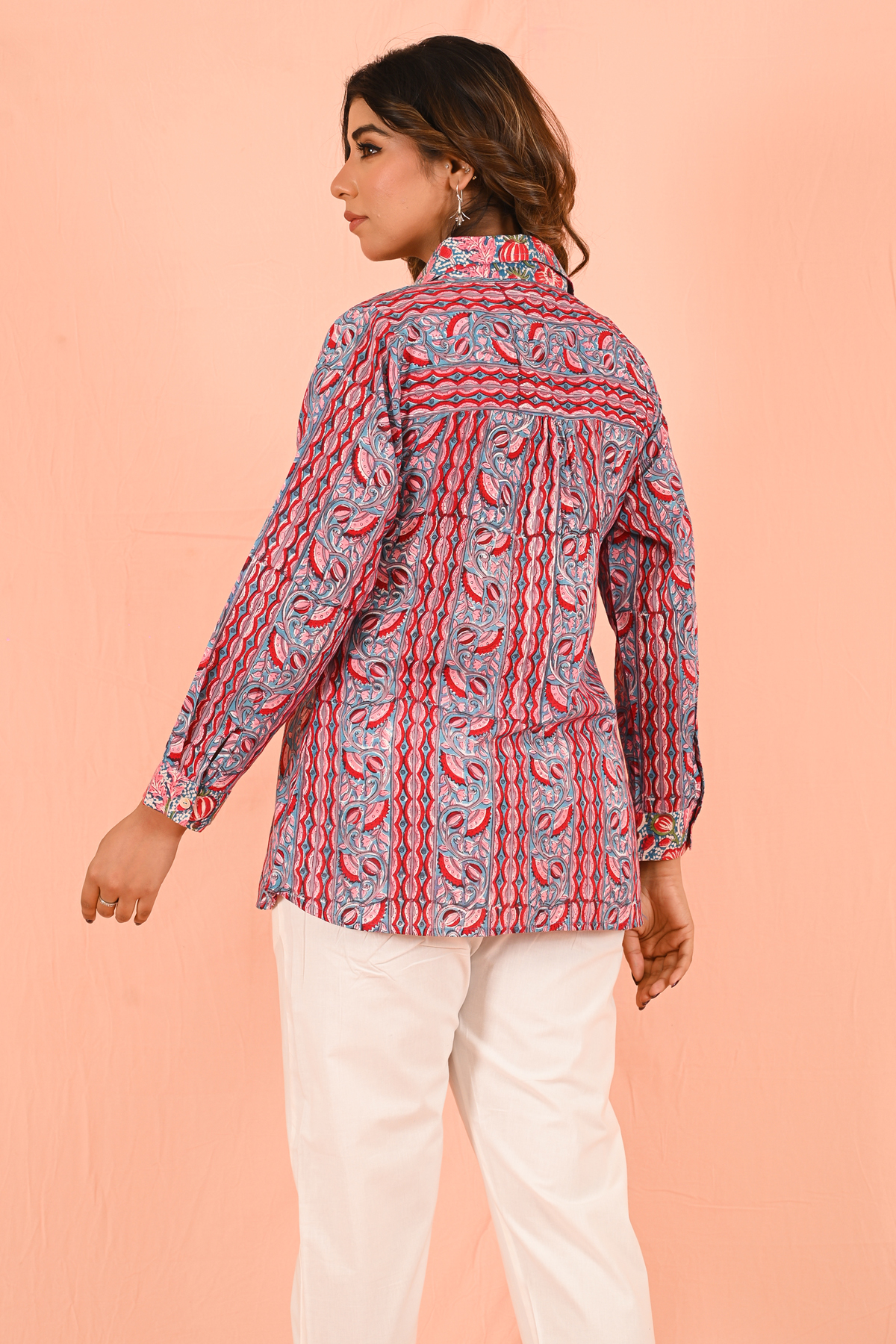 Style it with white trousers or denim for a fresh summer contrast, or tuck it into a skirt for a refined, chic vibe. Roll up the sleeves for a relaxed look or layer it with minimal accessories to keep the focus on its bold color.